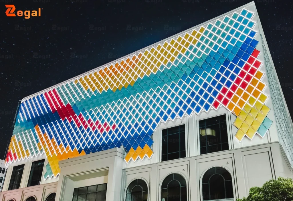Tại Sống Platform Huế, điều khiển DMX được triển khai cho một tổ hợp giải trí và mua sắm có quy mô lớn, yêu cầu hệ thống chiếu sáng động ổn định và đồng bộ cao. Kiến trúc mặt ngoài lấy cảm hứng từ nghệ thuật pháp lam truyền thống đòi hỏi ánh sáng không chỉ làm nổi khối, mà còn phải tôn vinh hoa văn và màu sắc.