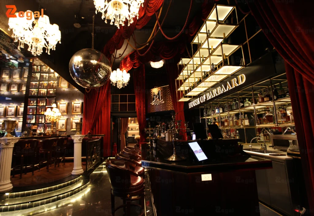 Trong không gian House of Barbaard, điều khiển DMX không được dùng để phô diễn kỹ thuật, mà để tạo nhịp điệu cảm xúc. Ánh sáng được tổ chức theo nhiều lớp, từ nền vàng ấm ở lối đi đến các hiệu ứng động tại quầy bar.