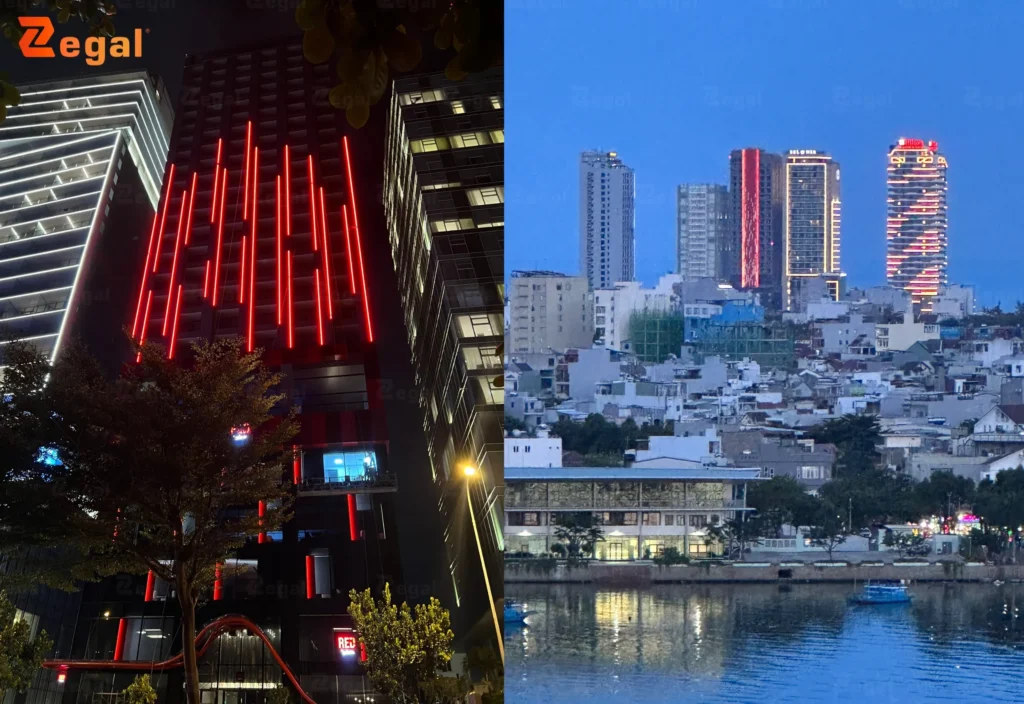 Với các dự án khách sạn như Radisson RED Đà Nẵng, DMX đóng vai trò kiểm soát ánh sáng cho các khu vực công cộng, nơi trải nghiệm thị giác cần thay đổi linh hoạt theo thời điểm trong ngày.