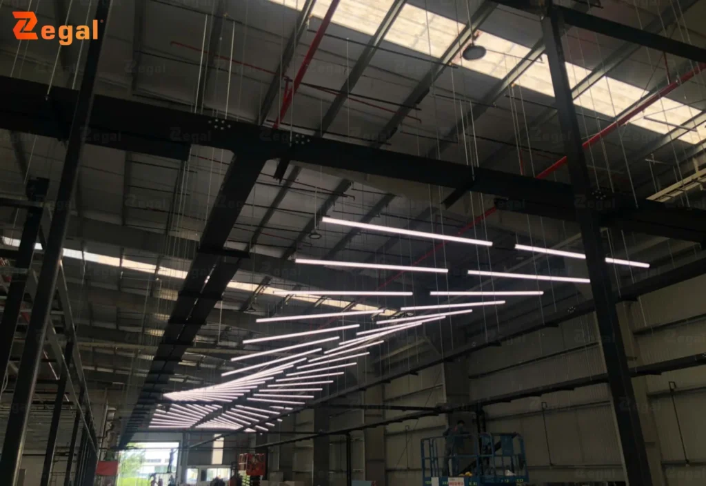 Khác với các dự án dịch vụ, nhà xưởng Long An là ví dụ điển hình cho việc ứng dụng DMX trong không gian công nghiệp. Ánh sáng được lập trình theo triết lý “chuyển động”, tạo nên nhịp sống riêng cho nhà xưởng.